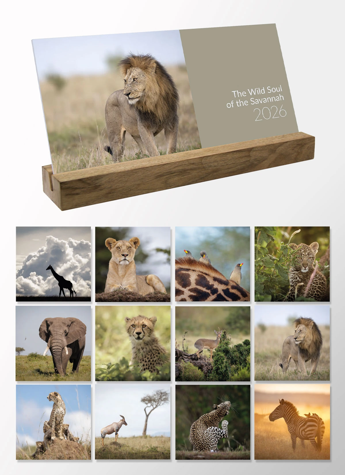 Attraktiver Tischkalender13 Postkarten: 138 x 138 mm | 12 Kalendarium-Karten: 110 x 138 mmpräsentiert auf Holzsockel